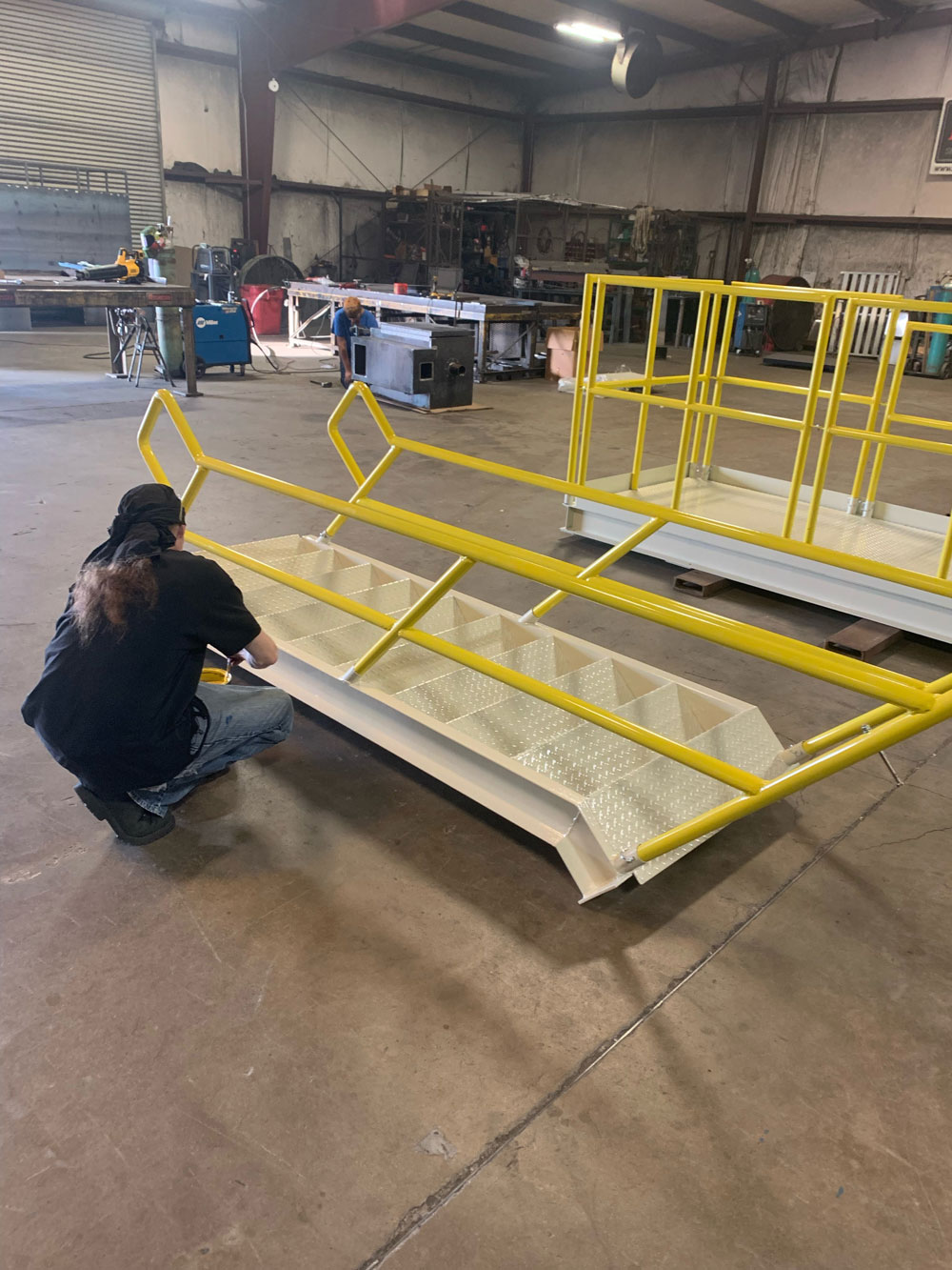 We have the means for stainless steel welding, aluminum welding and carbon steel welding. We build handrails, stairs, mezzanines, tables, trailers, frames, carts, and so much more.